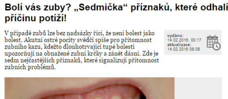 V případě zubů lze bez nadsázky říci, že není bolest jako bolest. Akutní ostré pocity svědčí spíše pro přítomnost zubního kazu, kdežto dlouhotrvající tupé bolesti upozorňují na obnažené zubní krčky a zánět dásní. Zde je sedm nejčastějších příznaků, které signalizují přítomnost zubních problémů.
